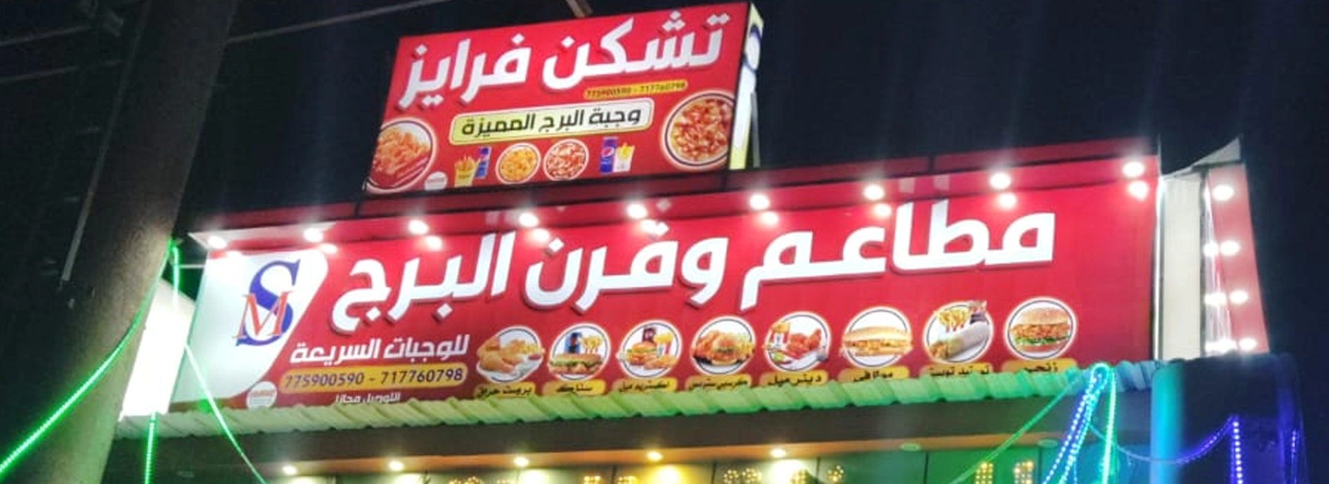 يقدم مطعم البرج مجموعة متنوعة من الأطباق التي تُحضَّر بأجود المكونات الطازجة، بدءًا من المأكولات التقليدية اليمنية التي تعكس تراث المنطقة، وصولاً إلى الأطباق العالمية التي تلبي أذواق مختلف الزوار. كما يوفر المطعم خدمات راقية وطاقم عمل محترف يحرص على تقديم تجربة استثنائية لكل ضيف.